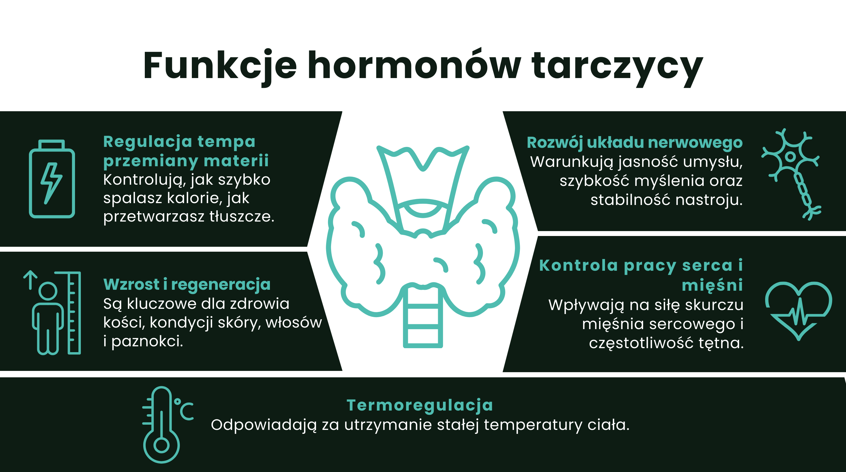 Mówiąc najprościej: hormony tarczycy to „iskra”, która pozwala komórkom efektywnie wykorzystywać tlen i składniki odżywcze do produkcji energii.