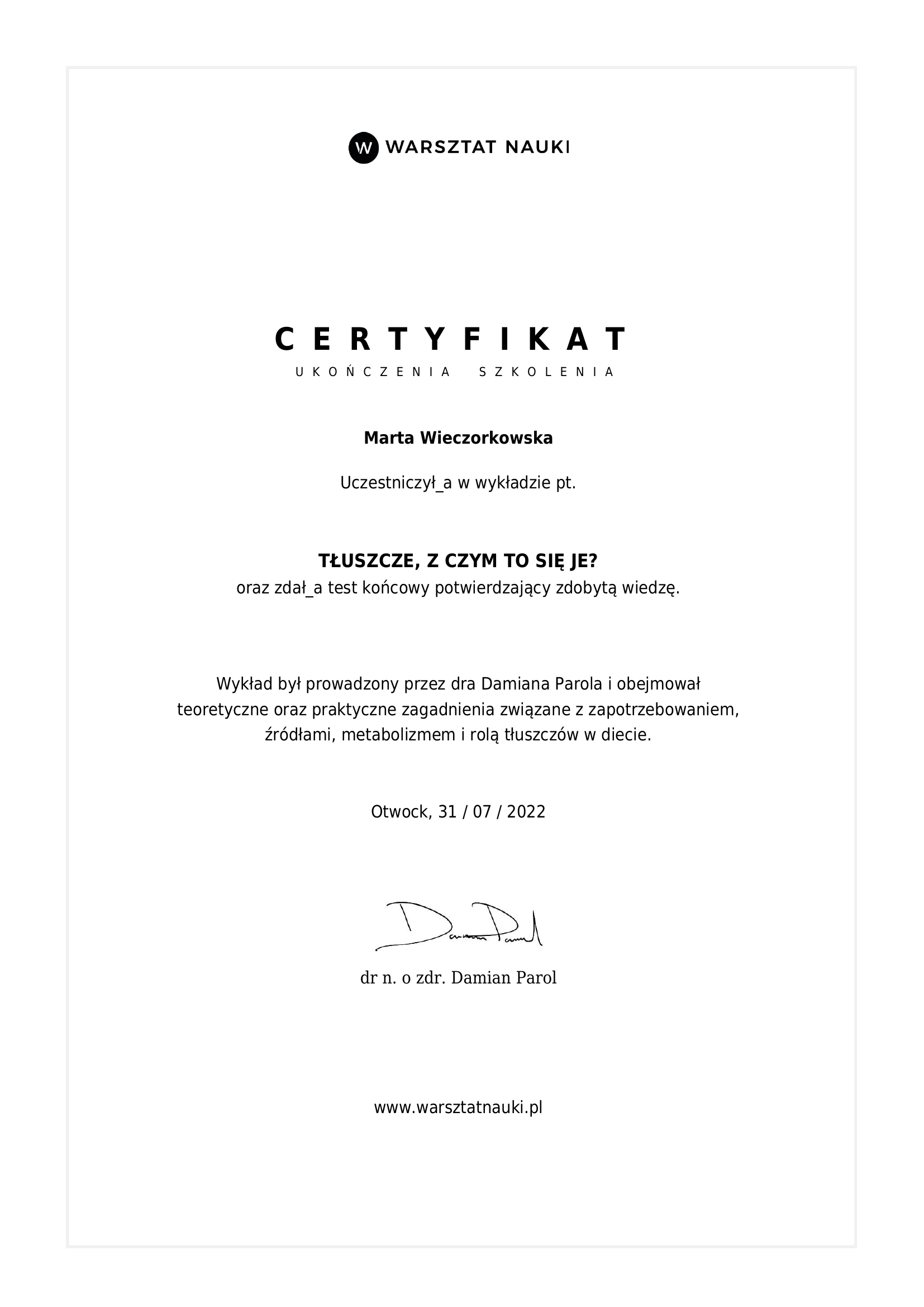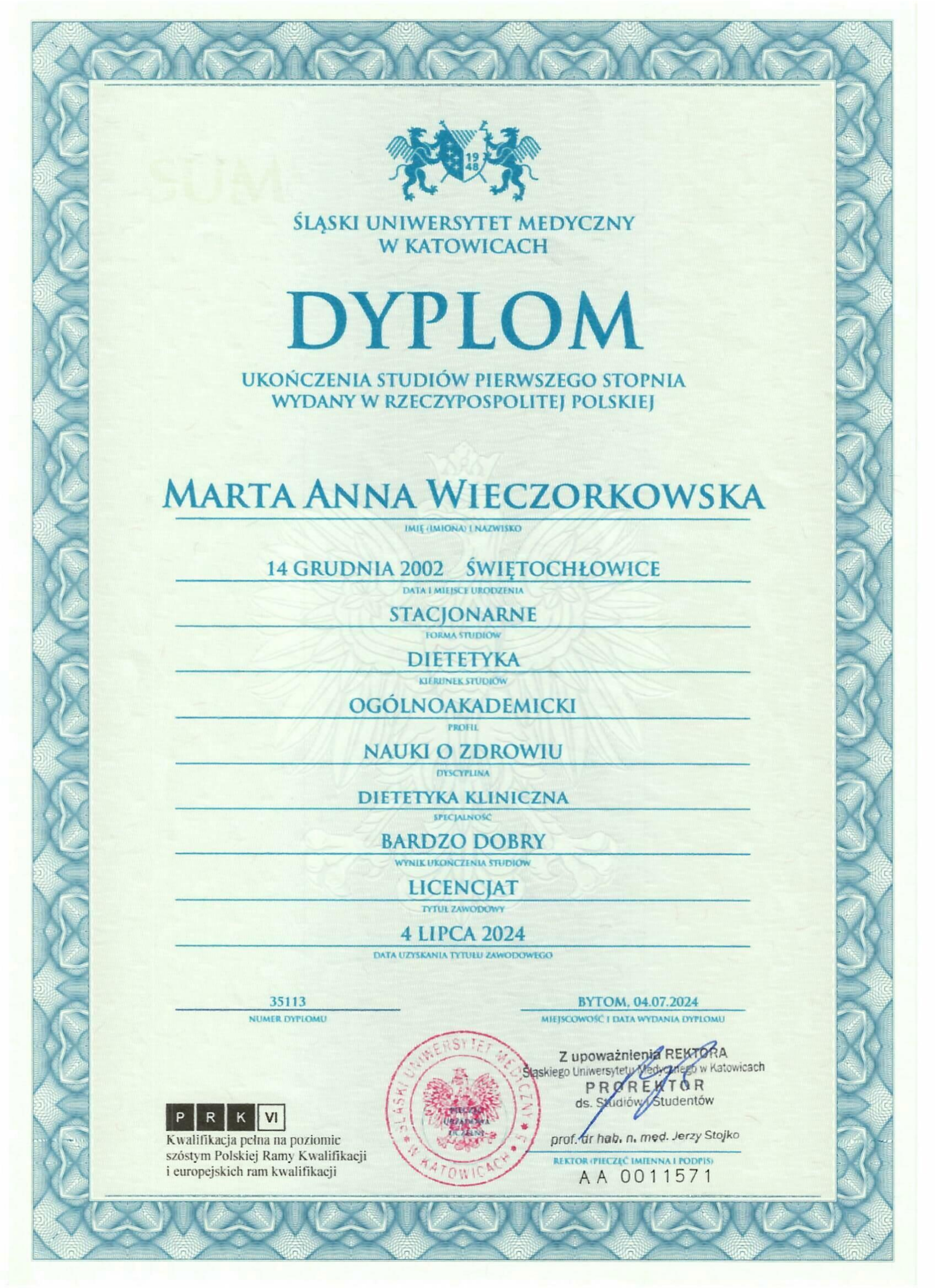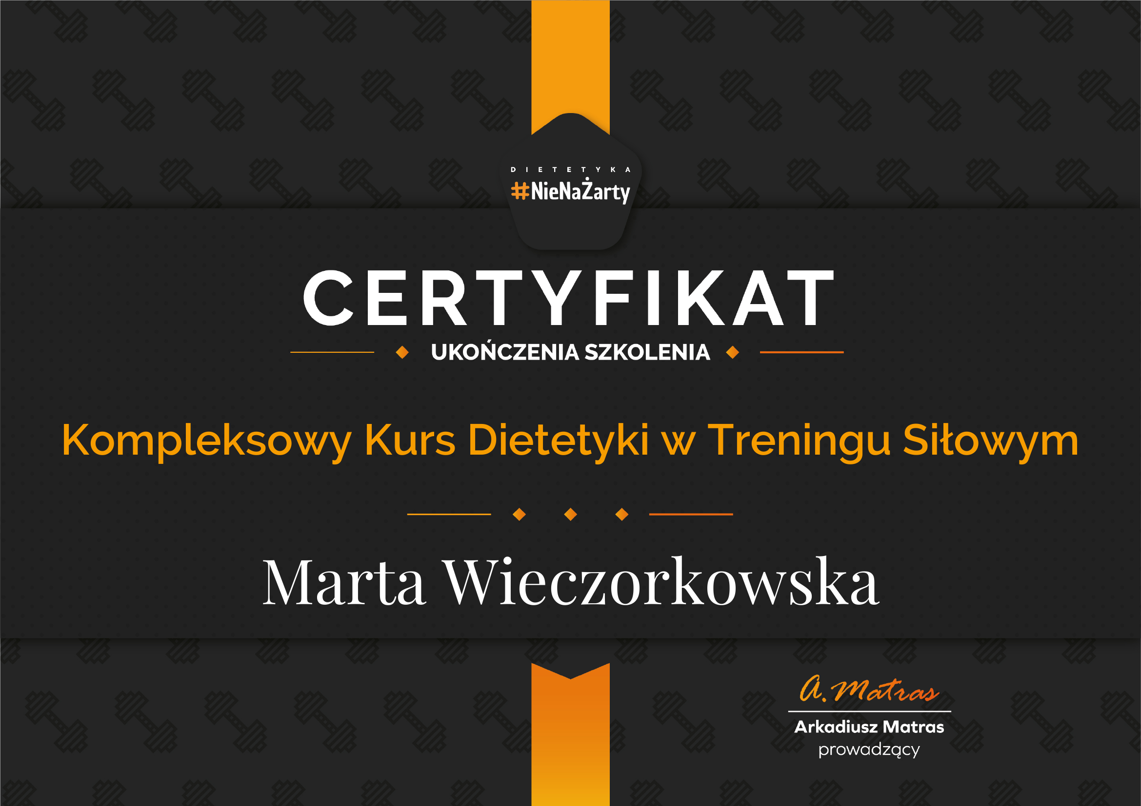 Nazywam się Marta Wieczorkowska i jestem licencjonowanym dietetykiem klinicznym SUM, obecnie kontynuuję naukę na studiach II stopnia na kierunku Trener Osobisty z Dietetyką Sportową na AWF w Katowicach. Rozpisuję diety, które poprawiają twoje zdrowie oraz nawyki żywieniowe, a nie tylko “odchudzają” - z ludzkim podejściem. • Współprace online ukierunkowane na utratę lub nabycie masy • Konsultacje dla osób, które mają dość „zaczynania od poniedziałku” Specjalizuję się w: • Dietach ...